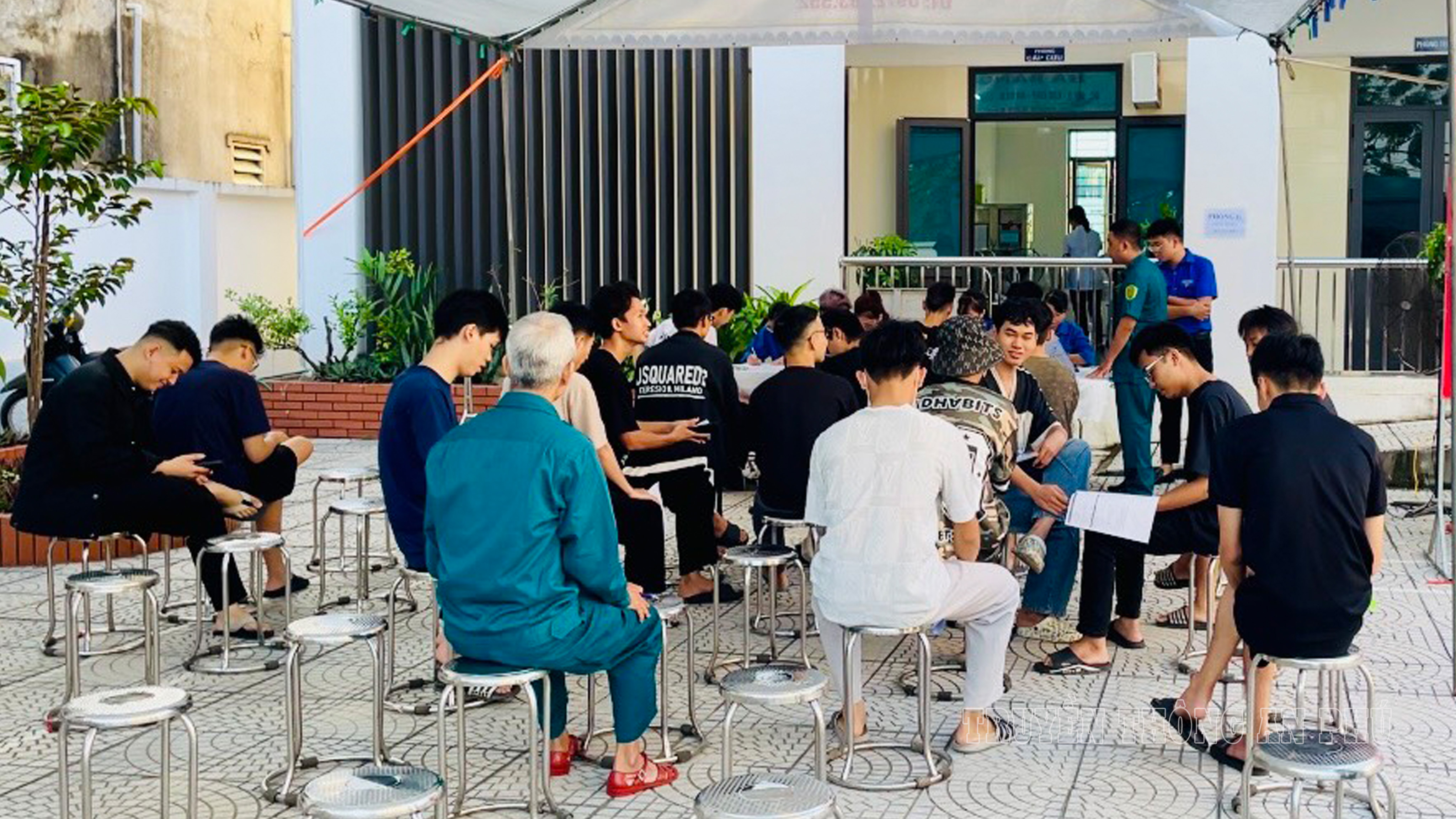 Thanh niên xã An Phú đợi đến lượt thực hiện sơ tuyển nghĩa vụ quân sự năm 2026