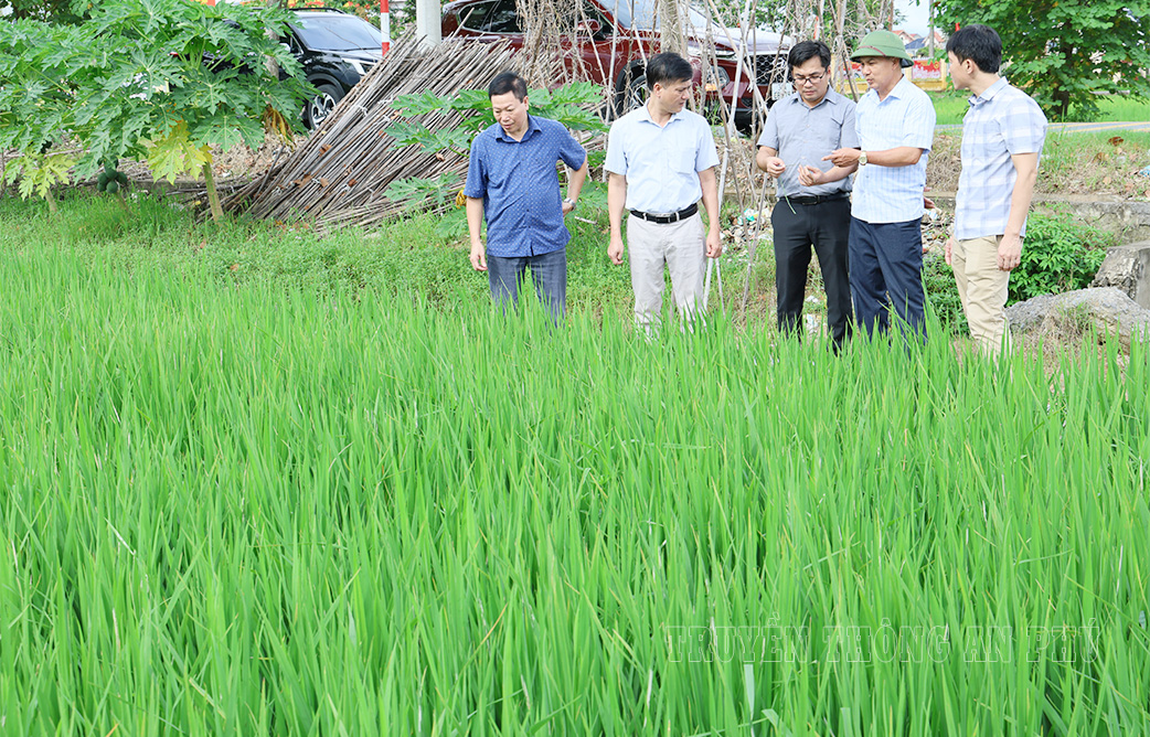 Nhằm kịp thời chỉ đạo phòng trừ sâu bệnh bảo vệ sản xuất lúa, đồng chí Nguyễn Duy Hưng - Bí thư Đảng ủy, Chủ tịch HĐND xã; đồng chí Nguyễn Đình Dũng - Chủ tịch UBND xã; đồng chí Trần Đức Khanh – Phó Chủ tịch UBND xã đã đi kiểm tra thực tế đồng ruộng trên địa bàn xã. Cùng đi có lãnh đạo phòng Kinh tế, Giám đốc HTX dịch vụ nông nghiệp và bí thư chi bộ, trưởng thôn trong xã.
