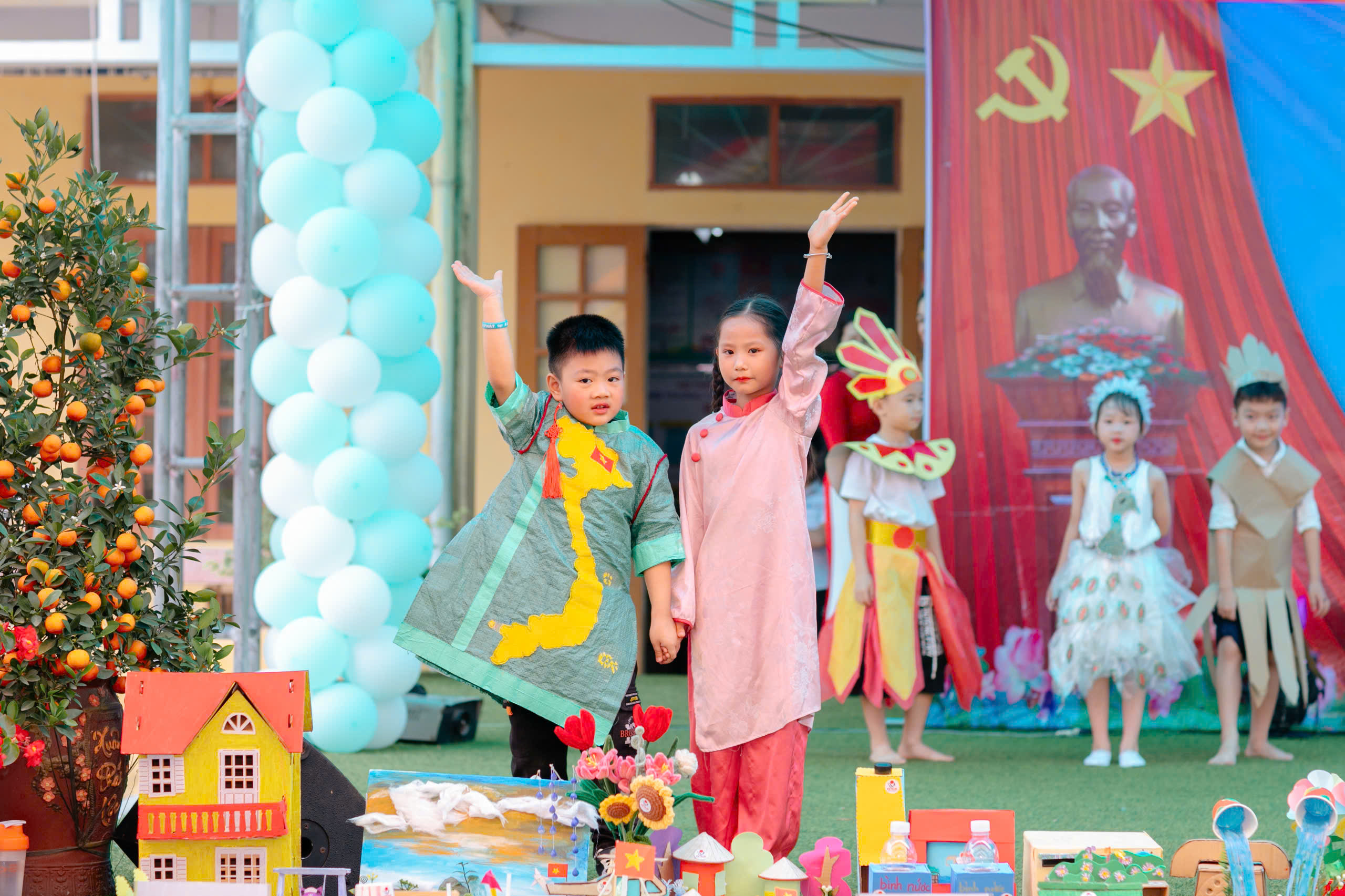 Cũng trong chương trình, nhà trường còn trưng bày sản phẩm sáng tạo Stem do các em học sinh thực hiện từ những nguyên liệu sẵn có; Phần biểu diễn thời trang tái chế đã tạo nên bầu không khí sôi động cho buổi ngoại khóa.
